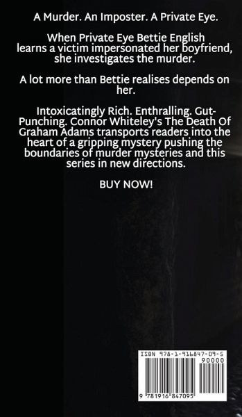 A Murder. An Imposter. A Private Eye. When Private Eye Bettie English learns a victim impersonated her boyfriend, she investigates the murder. A lot more than Bettie realises depends on her. Intoxicatingly Rich. Enthralling. Gut-Punching. Connor Whiteley's The Death Of Graham Adams transports readers into the heart of a gripping mystery pushing the boundaries of murder mysteries and this series in new directions. BUY NOW!