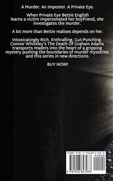 A Murder. An Imposter. A Private Eye. When Private Eye Bettie English learns a victim impersonated her boyfriend, she investigates the murder. A lot more than Bettie realises depends on her. Intoxicatingly Rich. Enthralling. Gut-Punching. Connor Whiteley's The Death Of Graham Adams transports readers into the heart of a gripping mystery pushing the boundaries of murder mysteries and this series in new directions. BUY NOW!