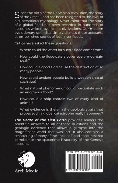 Since the birth of the Darwinian revolution, the story of the Great Flood has been relegated to the level of a superstitious mythology. Never mind that the story of a global flood has been recorded in hundreds of accounts written by ancient civilizations. Our modern evolutionary scientists simply dismiss these accounts as embellished stories of local river floods. Critics have asked these questions: · Where could the water for such a flood come from? · How could the floodwaters cover every mountain peak? · How could a good God cause the destruction of so many people? · How could ancient people build a wooden ship of such size? · What natural phenomenon could precipitate such an enormous flood? · How could a ship contain two of every kind of animal? · What evidence is there in the geologic strata that proves such a global catastrophe really happened? The Death of the First Earth provides readers the scientific answers to all of these questions and the geologic evidence that allows a glimpse into the magnificent world that was lost. It also contains a smattering of many of the ancient Flood accounts that corroborate the spacetime historicity of the Genesis account.