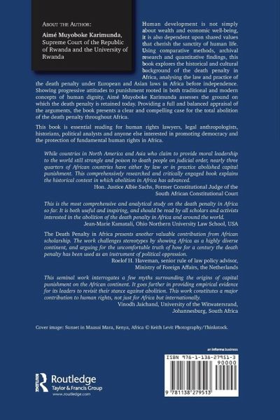 Human development is not simply about wealth and economic well-being, it is also dependent upon shared values that cherish the sanctity of human life. Using comparative methods, archival research and quantitative findings, this book explores the historical and cultural background of the death penalty in Africa, and presents a clear and compelling case for the total abolition of the death penalty throughout Africa. It is essential reading for those interested in promoting democracy and the protection of fundamental human rights in Africa.