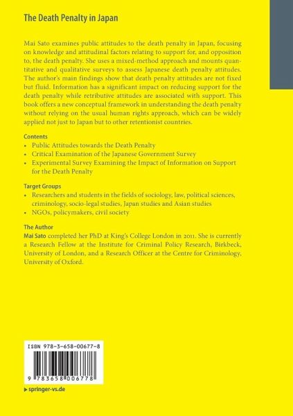 "The objective of this book is to challenge, using empirical research, the Japanese government's argument that it cannot abolish the death penalty because the vast majority of Japanese people are support it. ... the book is essential reading for all those with an interest in issues surrounding the death penalty and surveys of public opinion. It is sure to cause a major stir in debate over the death penalty in Japan." (Koichi Hamai, Social Science Japan Journal, Vol. 18 (1), January, 2015)