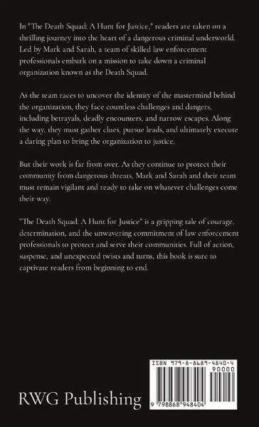 In "The Death Squad: A Hunt for Justice," readers are taken on a thrilling journey into the heart of a dangerous criminal underworld. Led by Mark and Sarah, a team of skilled law enforcement professionals embark on a mission to take down a criminal organization known as the Death Squad. As the team races to uncover the identity of the mastermind behind the organization, they face countless challenges and dangers, including betrayals, deadly encounters, and narrow escapes. Along the way, they must gather clues, pursue leads, and ultimately execute a daring plan to bring the organization to justice. But their work is far from over. As they continue to protect their community from dangerous threats, Mark and Sarah and their team must remain vigilant and ready to take on whatever challenges come their way. "The Death Squad: A Hunt for Justice" is a gripping tale of courage, determination, and the unwavering commitment of law enforcement professionals to protect and serve their communities. Full of action, suspense, and unexpected twists and turns, this book is sure to captivate readers from beginning to end.