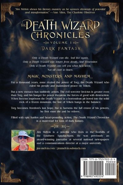 From award-winning fantasy author Jim Melvin comes a new three-volume edition of his dark fantasy series, The Death Wizard Chronicles. Volumes 2 and 3 will debut later in 2025. Dive into a fantastical realm where magic, monsters, and mayhem collide, crafting an unforgettable adventure. With a unique blend of fierce battles, shadowy magic, and a richly woven narrative, this series explores profound themes of transformation and sacrifice. This isn't just a tale about dragons, wizards, and warriors. It's about the choices that shape our destinies. Join the journey and uncover the secrets of Triken! ~~Only a Death Wizard can die. And live again.~~ For a thousand years, none rivaled the power of Torg, the Death Wizard who ruled his people and maintained peace on Triken. But a new menace has suddenly arisen. The evil sorcerer Invictus poses a threat greater than Torg has ever faced, his insatiable hunger for power casting a dark shadow over the forces of good. When Invictus imprisons the Death Wizard in a horrendous pit bored into the solid rock of a frozen mountain, Triken's fate hangs precariously in the balance. Torg becomes freedom's last hope. But to harness the full extent of his powers, he first must die and be reborn. Action-packed and yet profound, this dark fantasy saga will thrill and challenge fans of the genre in new and thought-provoking ways.