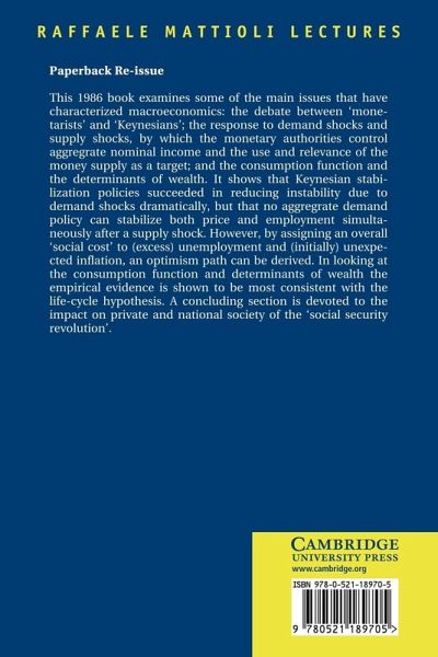 This 1986 book examines some of the main issues that have characterized macroeconomics: the debate between 'monetarists' and 'Keynesians'; the response to demand shocks and supply shocks, by which the monetary authorities control aggregrate nominal income and the use and relevance of the money supply as a target; and the consumption function and the determinants of wealth. It shows that Keynesian stabilization policies succeeded in reducing instability due to demand shocks dramatically, but that no aggregrate demand policy can stabilize both price and employment simultaneously after a supply shock. However, by assigning an overall 'social cost' to (excess) unemployment and (initially) unexpected inflation, an optimism path can be derived. In looking at the consumption function and determinants of wealth the empirical evidence is shown to be most consistent with the life-cycle hypothesis. A concluding section is devoted to the impact on private and national society of the 'social security revolution'.
