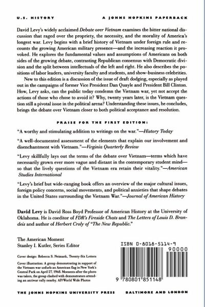 David Levy's widely acclaimed Debate Over Vietnam examines the bitter national discussion that raged over the propriety, the necessity, and the morality of America's longest war. Levy begins with a brief history of Vietnam under foreign rule and recounts the growing American military presence--and the increasing reaction it provoked. He explores the fundamental values and assumptions of Americans on both sides of the growing debate, contrasting Republican consensus with Democratic division and the split between intellectuals of the left and right.