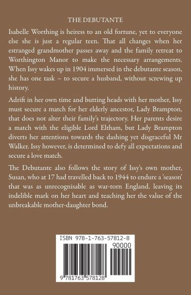Isabelle Worthing is heiress to an old fortune, yet to everyone else she is just a regular teen. That all changes when her estranged grandmother passes away and the family retreat to Worthington Manor to make the necessary arrangements. When Issy wakes up in 1904 immersed in the debutante season, she has one task - to secure a husband, without screwing up history. Adrift in her own time and butting heads with her mother, Issy must secure a match for her elderly ancestor, Lady Brampton, that does not alter their family's trajectory. Her parents desire a match with the eligible Lord Eltham, but Lady Brampton diverts her attentions towards the dashing yet disgraceful Mr Walker. Issy however, is determined to defy all expectations and secure a love match. The Debutante also follows the story of Issy's own mother, Susan, who at 17 had travelled back to 1944 to endure a 'season' that was as unrecognisable as war-torn England, leaving its indelible mark on her heart and teaching her the value of the unbreakable mother-daughter bond.