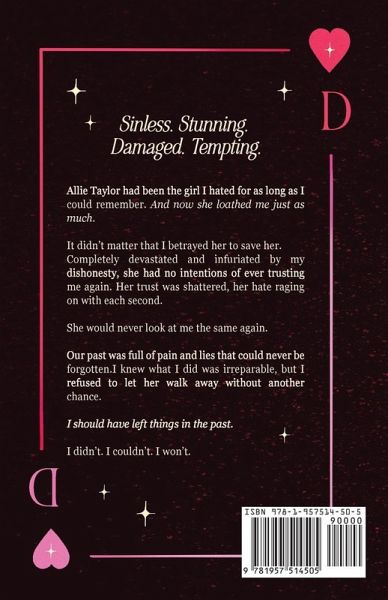 Sinless. Stunning. Damaged. Tempting. Allie Taylor had been the girl I hated for as long as I could remember. And now she loathed me just as much. It didn't matter that I betrayed her to save her. Completely devastated and infuriated by my dishonesty, she had no intentions of ever trusting me again. Her trust was shattered, her hate raging on with each second. She would never look at me the same again. Our past was full of pain and lies that could never be forgotten. I knew what I did was irreparable, but I refused to let her walk away without another chance. I should have left things in the past. I didn't. I couldn't. I won't. I needed her. Even if it cost me everything.