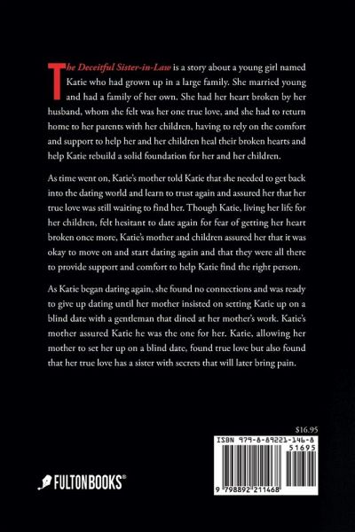 The Deceitful Sister-in-Law is a story about a young girl named Katie who had grown up in a large family. She married young and had a family of her own. She had her heart broken by her husband, whom she felt was her one true love, and she had to return home to her parents with her children, having to rely on the comfort and support to help her and her children heal their broken hearts and help Katie rebuild a solid foundation for her and her children. As time went on, Katie's mother told Katie that she needed to get back into the dating world and learn to trust again and assured her that her true love was still waiting to find her. Though Katie, living her life for her children, felt hesitant to date again for fear of getting her heart broken once more, Katie's mother and children assured her that it was okay to move on and start dating again and that they were all there to provide support and comfort to help Katie find the right person. As Katie began dating again, she found no connections and was ready to give up dating until her mother insisted on setting Katie up on a blind date with a gentleman that dined at her mother's work. Katie's mother assured Katie he was the one for her. Katie, allowing her mother to set her up on a blind date, found true love but also found that her true love has a sister with secrets that will later bring pain.