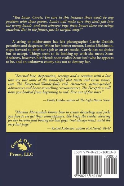 A string of misfortunes has left photographer Carrie Daniels penniless and desperate. When her former mentor, Louise Dickenson, steps forward to offer her a job as an art model for a private commission, Carrie has no choice but to accept. Things seem to be looking up when she meets Scott Andrews, but her friends soon realize Scott isn't who he appears to be, and Carrie's luck goes from bad to worse when Louise's photos of her fall into the wrong hands.