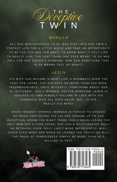 Morgan All she was supposed to do was step into her twin's perfect life for a little while and take an opportunity to be the fun one for once. To know what it felt like to really live. The last thing she ever meant to do was fall for her sister's husband. How can something that is so wrong feel so right? Jasen His wife had become almost like a roommate over the past few years. The distance between them had been insurmountable. Until recently. Something about her is ... different. She's warmer, softer somehow. Jasen is shocked to find himself falling in love with his gorgeous wife all over again. But... is she really his wife? When tragedy strikes, Morgan is forced to choose between continuing the lie and owning up to her deception. Doing the right thing could mean losing the only man she's ever loved, but can a relationship built on betrayal ever truly last? More importantly, will Jasen even want her when he learns the truth-or will the price of forgiveness simply be more than he's willing to pay?