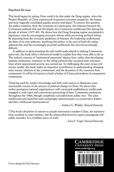 This book begins by asking, How could it be that under the Deng regime, when the People's Republic of China experienced its greatest economic prosperity, the largest and most tragically concluded popular protest took place? To answer this question the author examines, from the viewpoint of a participant, the relations between the Communist political elite and the largely anti-Communist intellectual elite during the decade of reform (1977-89). He shows how the Deng Xiaoping regime precipitated a legitimacy crisis by encouraging economic reform while preventing political reform: By departing from the economic guidelines of Maoism, the leadership undermined the basis of its own authority. Justifying this policy in the eyes of both the ruling political elite and the increasingly powerful intellectual elite proved increasingly difficult. In addition to demonstrating the role intellectuals played in shaking Communist-party rule, the book offers a theoretical model to explain how they were able to do so. The author's concept of "institutional parasitism" depicts how, rather than developing separate institutions, resistance to the ruling political elite occupied state structures from which oppositional activity was carried out. In challenging the state versus civil society model, this book makes an important contribution to understanding changing state-society relations in late communism, and the dynamics of the transition from communism. It will be of interest to both scholars of China and students of comparative communism.