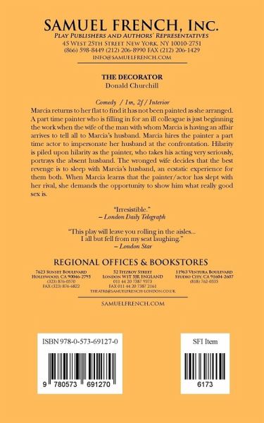 Comedy Characters: 1 male, 2 female Interior Set Marcia returns to her flat to find it has not been painted as she arranged. A part time painter who is filling in for an ill colleague is just beginning the work when the wife of the man with whom Marcia is having an affair arrives to tell all to Marcia's husband. Marcia hires the painter a part time actor to impersonate her husband at the confrontation. Hilarity is piled upon hilarity as the painter, who takes his acti