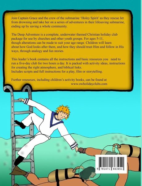 Join Captain Grace and the crew of the submarine 'Holey Spirit' as they rescue Jet from drowning and take her on a series of adventures in their lifesaving submarine, ending up by saving a whole community. The Deep Adventure is a complete, underwater themed Christian holiday club package for use by churches and other youth groups. For ages 5-11, though alterations can be made to suit your age range. Children will learn about how God looks after them, and how they should trust Him and follow in His ways, through analogy and fun stories. This leader's book contains all the instructions and basic resources you need to run a five-day club for two hours a day. It is packed with activity ideas, instructions for creating the right atmosphere, and biblical links. Includes scripts and full instructions for a play, film or storytelling. Further resources, including children's activity books, can be found at www.owholidayclubs.com