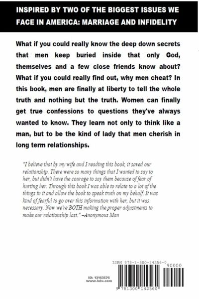 Inspired by two of the biggest issues we face in America: marriage and infidelity. What if you could really know the deep down secrets that men keep buried inside that only God, themselves and a few close friends know about? What would you do if you found out that the man you are married to or even dating is not the person you thought he was? In this book we are giving ladies the opportunity of a life time to join the boys club and have exclusive rights to listen to men openly express themselves like never before in history. What you will learn can change your life and could be the key to building long lasting relationships. Learn the destructive effects of sin which we know is very attractive, and it promises to gratify the desires of the flesh, but the damages last a lot longer than any stolen moment of pleasure. What can women do to turn the course of nature from this destructive path? They can learn not only to think like a man, but to be the kind of lady that men cherish in long term relationships.