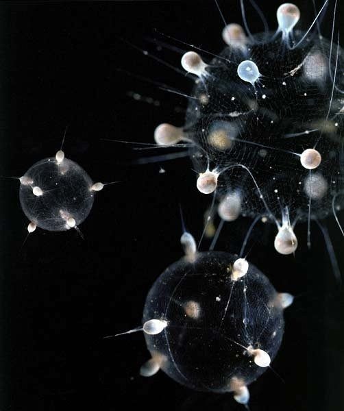 Überhaupt treibt die Einsamkeit in der Tiefe manche Tiere zu seltsamen Formen des Zusammenlebens: So hängt bei den Schwarzanglern das winzige Männchen am ledrigen Leib des pampelmusengroßen Weibchens fest, und zwar ein Leben lang.