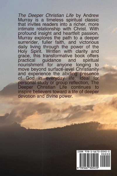 The Deeper Christian Life by Andrew Murray is a timeless spiritual classic that invites readers into a richer, more intimate relationship with Christ. With profound insight and heartfelt passion, Murray explores the path to a deeper surrender, fuller faith, and victorious daily living through the power of the Holy Spirit. Written with clarity and grace, this transformative book offers practical guidance and spiritual nourishment for anyone longing to move beyond surface-level Christianity and experience the abiding presence of God in everyday life. Ideal for personal study or group reflection, The Deeper Christian Life continues to inspire believers toward a life of deeper devotion and divine power.