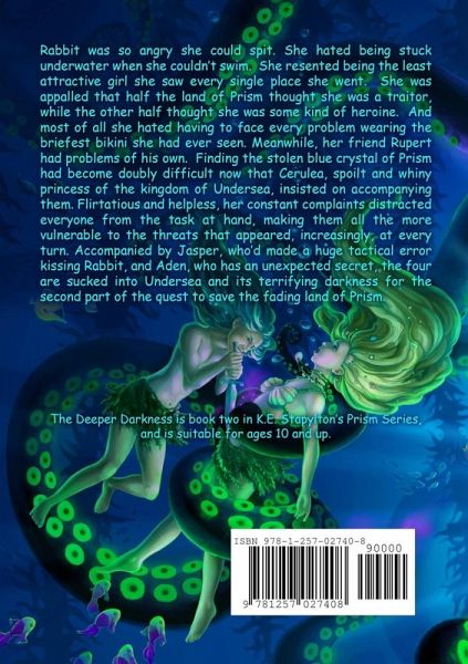 Book 2 of the Prism Series. Expecting to be returned to their world after the successful retrieval of the red crystal quadrant, Rabbit and Rupert are instead sucked, with Jasper and Aden, into the oceans of Prism. From Undersea to the home of the mer-people, and then to the utter deep and the realms of the slurry, Rupert, Rabbit, Jasper and Aden experience the very best and worst the watery worlds have to offer, as their journey becomes a terrifying quest for the blue crystal quadrant. The Deeper Darkness is book 2 in the Prism series.