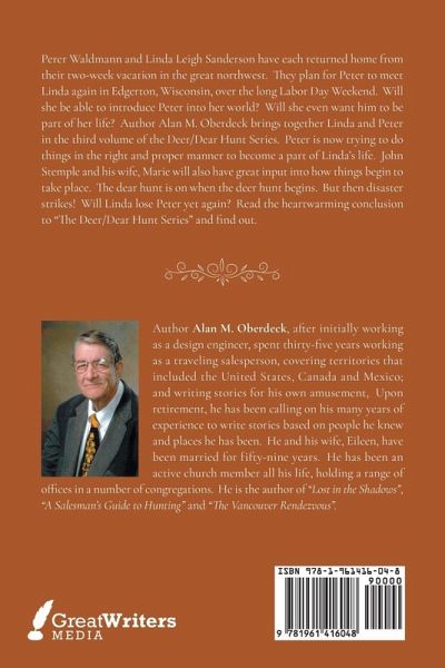 Peter Waldmann and Linda Leigh Sanderson have each returned home from their two-week vacation in the great northwest. They plan for Peter to meet Linda again in Edgerton, Wisconsin, over the long Labor Day Weekend. Will she be able to introduce Peter into her world? Will she even want him to be part of her life? Author Alan M. Oberdeck brings together Linda and Peter in the third volume of the Deer/Dear Hunt series. Peter is now trying to do things in the right and proper manner to become a part of Linda's life. John Stemple and his wife, Marie will also have a great input into how things begin to take place. The dear hunt is on when the deer hunt begins. But then disaster strikes! Will Linda lose Peter yet again? Read the heart-warming conclusion to "The Deer/Dear Hunt Series" and find out.