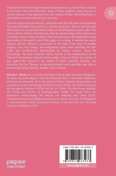 The book argues that the Tribunal, confronted with the difficulties of maintaining the balance between two parties in a situation of default, drew on the full range of its powers to ensure that neither China nor the Philippines would suffer from China's default. Further, the book describes the shortcomings of the submissions of putative amicus curiae. It refutes China's questioning of the independence and impartiality of the experts and of the judges. In so doing, it explains the expert opinions and the Tribunal 's assessments of the latter in the areas of satellite imagery, coral reef ecology, and navigational safety, while rebutting the half- truths and counter-truths disseminated by Chinese scholars about the proceedings. The book compares China's threats to the independence of the Tribunal to its behavior towards Chinese judges. It places China's accusations of bias against the Tribunal in the context of China's domestic situation, and concludes that the Tribunal, acting independently and impartially, was able to perform the judicial function, despite China's default.