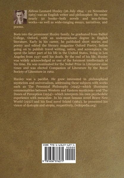 Aldous Leonard Huxley (26 July 1894 - 22 November 1963) was an English writer and philosopher. He wrote nearly 50 books-both novels and non-fiction works-as well as wide-ranging essays, narratives, and poems. Born into the prominent Huxley family, he graduated from Balliol College, Oxford, with an undergraduate degree in English literature. Early in his career, he published short stories and poetry and edited the literary magazine Oxford Poetry, before going on to publish travel writing, satire, and screenplays. He spent the latter part of his life in the United States, living in Los Angeles from 1937 until his death. By the end of his life, Huxley was widely acknowledged as one of the foremost intellectuals of his time. He was nominated for the Nobel Prize in Literature nine times and was elected Companion of Literature by the Royal Society of Literature in 1962. Huxley was a pacifist. He grew interested in philosophical mysticism and universalism, addressing these subjects with works such as The Perennial Philosophy (1945)-which illustrates commonalities between Western and Eastern mysticism-and The Doors of Perception (1954)-which interprets his own psychedelic experience with mescaline. In his most famous novel Brave New World (1932) and his final novel Island (1962), he presented his vision of dystopia and utopia, respectively. (wikipedia.org)