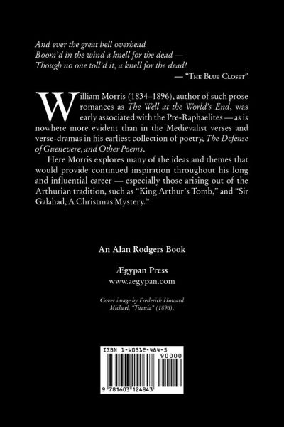 And ever the great bell overheadBoom'd in the wind a knell for the dead --Though no one toll'd it, a knell for the dead!-- "The Blue Closet" Here Morris explores many of the ideas and themes that would provide continued inspiration throughout his long and influential career -- especially those arising out of the Arthurian tradition, such as "King Arthur's Tomb," and "Sir Galahad, A Christmas Mystery." And ever the great bell overhead Boom'd in the wind a knell for the dead -- Though no one toll'd it, a knell for the dead! -- "The Blue Closet"