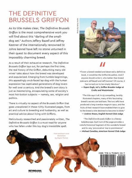 As its title makes clear, The Definitive Brussels Griffon is the most comprehensive work you will find about this "darling of the small-dog set." Authors Jeffery Bazell and Jeffrey Kestner of the internationally renowned St Johns kennel have left no stone unturned in their quest to document every aspect of this impossibly charming breed. As a result of their exhaustive research, The Definitive Brussels Griffon lays out, for perhaps the first time, the real history of the Griffon, debunking many old wives' tales about how the breed was developed and popularized. Emerging from humble beginnings, this appealingly snub-faced lap dog with the human expression has captivated generations of dog lovers for well over a century. And the breed's own story is just as mesmerizing, encapsulating some of society's most hot-button subjects - namely, sex, religion and politics. There is virtually no aspect of the Brussels Griffon that goes unexplored in these richly illustrated pages, from art and culture to breeding and husbandry, as well as practical advice about living with Griffons. Meticulously researched and passionately written, The Definitive Brussels Griffon is a must-read for anyone who has fallen under the spell of this indescribably unique breed.