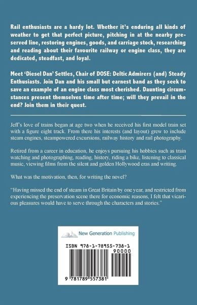 Rail enthusiasts are a hardy lot. Whether it's enduring all kinds of weather to get that perfect picture, pitching in at the nearby preserved line, restoring engines, goods, and carriage stock, researching and reading about their favourite railway or engine class, they are dedicated, steadfast, and loyal. Meet 'Diesel Dan' Settles, Chair of DOSE: Deltic Admirers (and) Steady Enthusiasts. Join Dan and his small but earnest band as they seek to save an example of an engine class most cherished. Daunting circumstances present themselves time after time; will they prevail in the end? Join them in their quest.…mehr