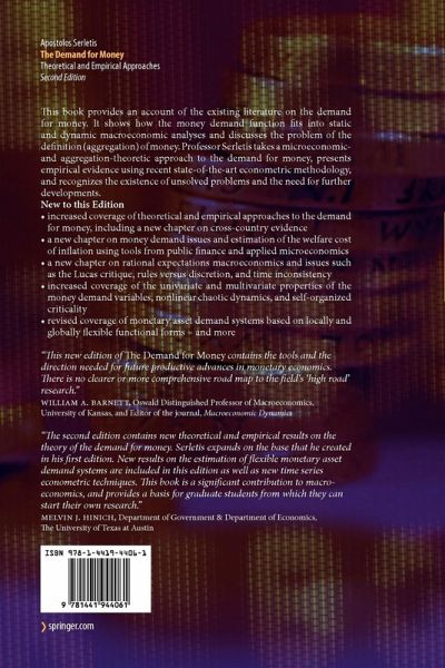 Static Monetary Macroeconomics.- Classical Macroeconomic Theory.- Keynesian Macroeconomic Theory.- Dynamic Monetary Macroeconomics.- Models with Rational Expectations.- Neoclassical Growth Theory.- Monetary Growth Theory.- The Welfare Cost of Inflation.- Theoretical Approaches to the Demand for Money.- The Classics, Keynes, and Friedman.- Transactions Theories of Money Demand.- Portfolio Theories of Money Demand.- Empirical Approaches to the Demand for Money.- Conventional Demand for Money Functions.- Modeling Trends in the Variables of the Money Demand Function.- Cointegration and the Aggregate Demand for Money Function.- Balanced Growth, the Demand for Money, and Monetary Aggregation.- Cross-Country Evidence on the Demand for Money.- Microfoundations and Monetary Aggregation.- The Microeconomic Foundations of the Definition of Money.- The New Monetary Aggregates.- Nominal Stylized Facts.- Microfoundations and the Demand for Money.- The Nonparametric Approach to Demand Analysis.- The Parametric Approach to the Demand for Monetary Assets.- Locally Flexible Functional Forms and Demand Systems.- Globally Flexible Functional Forms and Demand Systems.- Microeconometrics and the Demand for Money.- The Econometrics of Demand Systems.- Applied Monetary Demand Analysis.- Future Research Agenda.