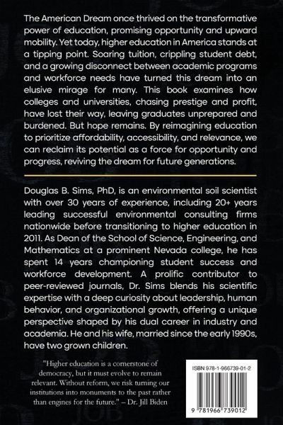 The American Dream-a promise of opportunity, upward mobility, and a better life-has always been tied to education's transformative power. For generations, colleges and universities opened doors to careers, financial security, and societal progress. Yet today, higher education in America stands at a crossroads. Skyrocketing tuition, overwhelming student debt, and a growing disconnect between academic programs and workforce needs have eroded its promise. For many, the dream of education as the ultimate equalizer feels more like an illusion. This book tackles the critical question: How did we get here, and what must be done to reclaim higher education's potential? Through a sharp examination of systemic flaws, this book explores how colleges and universities have strayed from their purpose, prioritizing prestige and profit over accessibility and equity. Rising costs have excluded countless students, leaving them burdened with debt or unable to attend. Curricula often fail to meet the demands of a rapidly evolving economy, leaving graduates unprepared. The problem is compounded by degrees offering little value in the job market. Fields like sociology and philosophy, while enriching, often fail to provide career-ready skills, leaving graduates burdened by debt and struggling for meaningful employment. These programs highlight a troubling disconnect between higher education and workforce demands. Moreover, inefficiencies in professional degree pathways, such as for medical doctors (MDs) and dentists (DDS/DMDs), underscore the need for reform. In the U.S., these degrees often take three to four years longer than necessary due to outdated requirements like completing a bachelor's degree before medical or dental school. In contrast, countries like the United Kingdom and Australia streamline these pathways, allowing students to enter directly into professional programs after high school, saving time and reducing financial strain. These extended U.S. timelines increase costs and delay the entry of qualified professionals into critical fields. Yet, higher education remains one of the most powerful tools we have to create a fairer, more prosperous society-if we confront its failings. This book critiques the problems and envisions a future where colleges and universities are revitalized as engines of opportunity, innovation, and social change. It challenges us to make higher education affordable, accessible, and aligned with 21st-century demands. From rethinking tuition models to fostering industry partnerships, from embedding civic responsibility into academic programs to investing in student success, the path forward is clear but requires bold action and collective will. This book is for anyone who believes in education's power to shape lives and societies. Whether you are a student navigating college challenges, a parent questioning the return on investment, an educator grappling with inequities, or a policymaker shaping the future, this work will inspire you to imagine what's possible. The American Dream is not dead-it waits to be reclaimed. Through innovation, commitment, and a shared belief in education's transformative power, we can restore higher education's promise as the cornerstone of opportunity and progress for all. This book offers a guide to reviving that vision and ensuring the dream endures for generations to come.