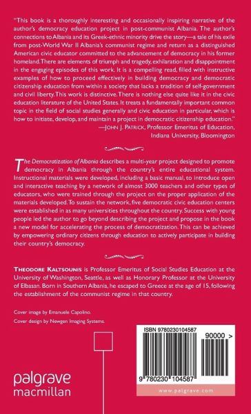 "This book is a thoroughly interesting and occasionally inspiring narrative of the author's democracy education project in post-communist Albania. The author's connections to Albania and its Greek-ethnic minority drive the story, a tale of his exile from post-World War II Albania's communist regime and return as a distinguished American civic educator committed to the advancement of democracy in his former homeland. There are elements of triumph and tragedy, exhilaration and disappointment in the engaging episodes of this work. It is a compelling read, filled with instructive examples of how to proceed effectively in building democracy and democratic citizenship education from within a society that lacks a tradition of self-government and civil liberty. This work is distinctive. There is nothing else quite like it in the civic education literature of the United States. It treats a fundamentally important common topic in the field of social studies generally and civic education in particular, which is how to initiate, develop, and maintain a project in democratic citizenship education." - John J. Patrick, Professor Emeritus of Education, Indiana University, Bloomington