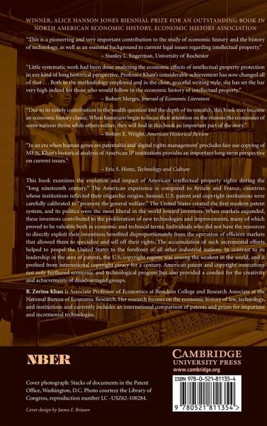 "Given the widespread appeal to history in modern judicial opinions, academic articles, and public policy debates, such empirical work is important. Historians and economists may dispute some of her methods or conclusions, but such debates about the historical facts will be a welcome change to the ascendancy of rhetoric on such subjects. Khan's work is an important contribution to our discourse about American patent law and its historical development." - Adam Mossoff, Michigan State University
