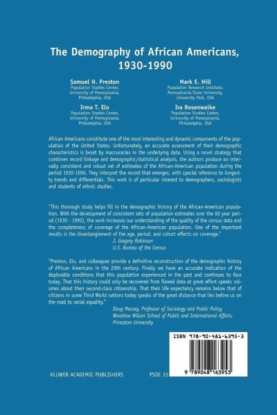 "Preston, Elo, and colleagues provide a definitive reconstruction of the demographic history of African Americans in the 20th century. Finally we have an accurate indication of the deplorable conditions that this population experienced in the past and continues to face today. That this history could only be recovered from flawed data at great effort speaks volumes about their second-class citizenship. That their life expectancy remains below that of citizens in some Third World nations today speaks of the great distance that lies before us on the road to racial equality." (Doug Massey, Princeton University, USA)
