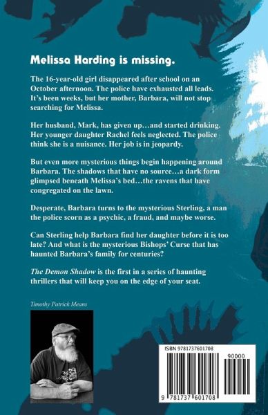The 16-year-old girl disappeared after school on an October afternoon. The police have exhausted all leads. It's been weeks, but her mother, Barbara, will not stop searching for Melissa. Her husband, Mark, has given up...and started drinking. Her younger daughter Rachel feels neglected. The police think she is a nuisance. Her job is in jeopardy. But even more mysterious things begin happening around Barbara. The shadows that have no source...a dark form glimpsed beneath Melissa's bed...the ravens that have congregated on the lawn. Desperate, Barbara turns to the mysterious Sterling, a man the police scorn as a psychic, a fraud, and maybe worse. Can Sterling help Barbara find her daughter before it is too late? And what is the mysterious Bishops' Curse that has haunted Barbara's family for centuries? The Demon Shadow is the first in a series of haunting thrillers that will keep you on the edge of your seat.