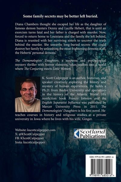 Some family secrets may be better left buried. Diana Chambers thought she escaped her life as the daughter of famous demon hunters Denny and Lucille Hebert, that is until an exorcism turns fatal and her father is charged with murder. Now, forced to return home to Louisiana and the family she left behind, Diana is reunited with her surviving sisters to uncover the truth behind the murder. She unearths long-buried secrets that could destroy her family by unleashing the most frightening demons of all, the Heberts' personal demons. The Demonologists' Daughters, a suspense and psychological mystery thriller with horror elements, takes readers into a world where The Conjuring meets Little Women.