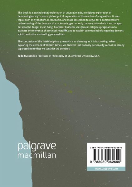 This book is a psychological exploration of unusual minds, a religious exploration of demonological myth, and a philosophical exploration of the reaches of pragmatism. It uses topics such as hypnotism, mediumship, and mass possession to argue for a comprehensive understanding of the demonic that acknowledges not only the creativity which it encourages, but also the danger it can bring. Professor Ruetenik uses James' religious pragmatism to evaluate the relevance of psychical research, and to explain common beliefs regarding demons, spirits, and other controlling personalities.