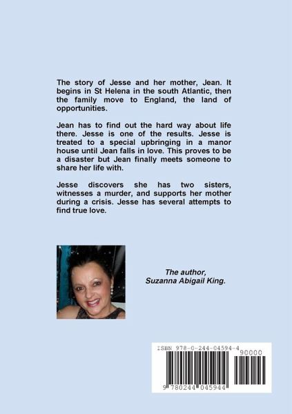 The story of Jesse and her mother, Jean. It begins in St Helena in the south Atlantic, then the family move to England, the land of opportunities. Jean has to find out the hard way about life there. Jesse is one of the results. Jesse is treated to a special upbringing in a manor house until Jean falls in love. This proves to be a disaster but Jean finally meets someone to share her life with. Jesse discovers she has two sisters, witnesses a murder, and supports her mother during a crisis. Jesse has several attempts to find true love. Money from the sale of this book will be donated to charities supporting work into cancer, dementia and mental health.
