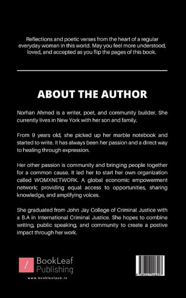 ""Norhan Ahmed is a writer, poet, and community builder. She currently lives in New York with her son and family. From 9 years old, she picked up her marble notebook and started to write. It has always been her passion and a direct way to healing through expression. Her other passion is community and bringing people together for a common cause. It led her to start her own organization called WOMXNETWORK. A global economic empowerment network; providing equal access to opportunities, sharing knowledge, and amplifying voices. She graduated from John Jay College of Criminal Justice with a B.A in International Criminal Justice. She hopes to combine writing, public speaking, and community to create a postive impact through her work.""