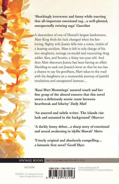 A descendant of one of Hawaii's largest landowners Matt King finds his luck changed when his fun-loving filghty wife Joanie falls into a coma victim of a boating accident. Matt is left in sole charge of his two daughters teenage ex-model and recovering drug addict Alex and Scottie a feisty ten-year-old. And then Matt discovers Joanie has been having an affair. Deciding to seek out Joanie's lover so that he too has a chance to say his goodbyes Matt takes to the road with his daughters on a memorable journey of painful revelations and unexpected humour...