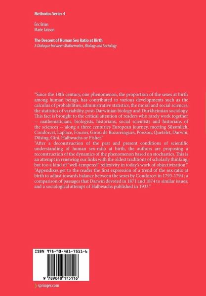 Appendixes get to the reader the first expression of a trend of the sex ratio at birth to adjust towards balance between the sexes by Condorcet in 1793-1794 ; a comparison of passages that Darwin devoted in 1871 and 1874 to similar issues ; and a sociological attempt of Halbwachs published in 1933.