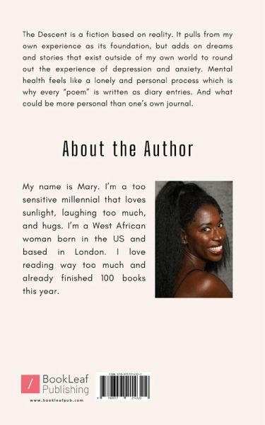 The Descent is a fiction based on reality. It pulls from my own experience as its foundation, but adds on dreams and stories that exist outside of my own world to round out the experience of depression and anxiety. Mental health feels like a lonely and personal process which is why every "poem" is written as diary entries. And what could be more personal than one's own journal.