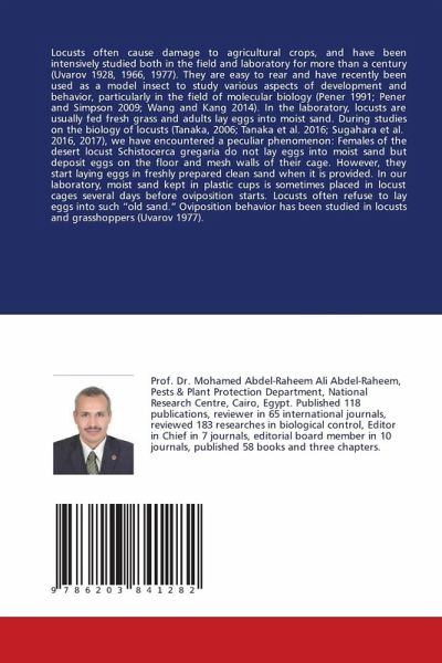 Locusts often cause damage to agricultural crops, and have been intensively studied both in the field and laboratory for more than a century (Uvarov 1928, 1966, 1977). They are easy to rear and have recently been used as a model insect to study various aspects of development and behavior, particularly in the field of molecular biology (Pener 1991; Pener and Simpson 2009; Wang and Kang 2014). In the laboratory, locusts are usually fed fresh grass and adults lay eggs into moist sand. During studies on the biology of locusts (Tanaka, 2006; Tanaka et al. 2016; Sugahara et al. 2016, 2017), we have encountered a peculiar phenomenon: Females of the desert locust Schistocerca gregaria do not lay eggs into moist sand but deposit eggs on the floor and mesh walls of their cage. However, they start laying eggs in freshly prepared clean sand when it is provided. In our laboratory, moist sand kept in plastic cups is sometimes placed in locust cages several days before oviposition starts. Locusts often refuse to lay eggs into such "old sand." Oviposition behavior has been studied in locusts and grasshoppers (Uvarov 1977).