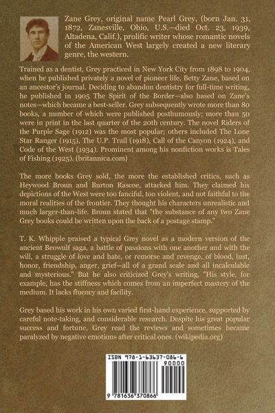 Zane Grey, original name Pearl Grey, (born Jan. 31, 1872, Zanesville, Ohio, U.S.—died Oct. 23, 1939, Altadena, Calif.), prolific writer whose romantic novels of the American West largely created a new literary genre, the western. Trained as a dentist, Grey practiced in New York City from 1898 to 1904, when he published privately a novel of pioneer life, Betty Zane, based on an ancestor’s journal. Deciding to abandon dentistry for full-time writing, he published in 1905 The Spirit of the Border—also based on Zane’s notes—which became a best-seller. Grey subsequently wrote more than 80 books, a number of which were published posthumously; more than 50 were in print in the last quarter of the 20th century. The novel Riders of the Purple Sage (1912) was the most popular; others included The Lone Star Ranger (1915), The U.P. Trail (1918), Call of the Canyon (1924), and Code of the West (1934). Prominent among his nonfiction works is Tales of Fishing (1925). (britannica.com) The more books Grey sold, the more the established critics, such as Heywood Broun and Burton Rascoe, attacked him. They claimed his depictions of the West were too fanciful, too violent, and not faithful to the moral realities of the frontier. They thought his characters unrealistic and much larger-than-life. Broun stated that "the substance of any two Zane Grey books could be written upon the back of a postage stamp." T. K. Whipple praised a typical Grey novel as a modern version of the ancient Beowulf saga, a battle of passions with one another and with the will, a struggle of love and hate, or remorse and revenge, of blood, lust, honor, friendship, anger, grief—all of a grand scale and all incalculable and mysterious." But he also criticized Grey's writing, "His style, for example, has the stiffness which comes from an imperfect mastery of the medium. It lacks fluency and facility. Grey based his work in his own varied first-hand experience, supported by careful note-taking, and considerable research. Despite his great popular success and fortune, Grey read the reviews and sometimes became paralyzed by negative emotions after critical ones. (wikipedia.org)