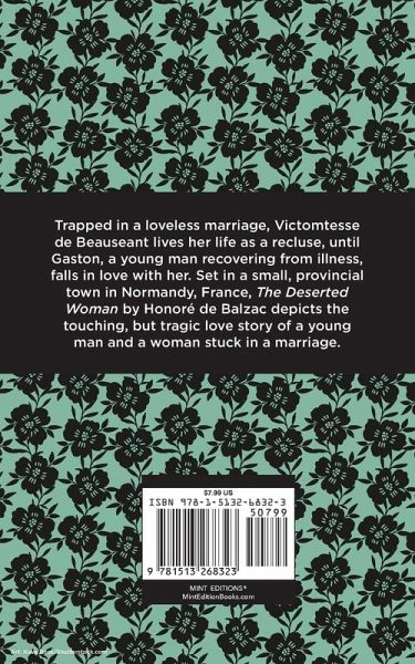 When young Gaston moves to Bayeux, a small province in Normandy, he feels stranded. Though he would rather spend his time in the capital city, Gaston must stay in Bayeux until he recovers from his illness. He feels unsatisfied and bored, until he hears the rumor about a woman living as a recluse on the countryside. Victomtesse de Beauseant is a beautiful woman who had been abandoned by her husband many years ago. Devastated, and now stuck in a loveless marriage because she cannot get a divorce, she lives in isolation. Gaston is moved by her story and becomes fixated, desperate to meet her. When he finally gets the courage to visit her home, Victomtesse de Beauseant is flattered by his infatuation, and despite her being ten years his senior, Beauseant and Gaston become lovers. However, their private paradise is soon interrupted by Gaston's disapproving mother, who is pressuring him to marry a woman he does not love. As rumors grow and Gaston's mother becomes more persistent, Gaston and Victomtesse's love is tested and threatened like never before. The Deserted Woman exemplifies Honoré de Balzac's extraordinary literary ability that has influenced esteemed authors such as Henry James and Charles Dickens. With intricate prose and unparalleled compassion, Honoré de Balzac explores the too-common predicament of women trapped in unhappy relationships. The Deserted Woman tells the emotional tale of the pressure society put on women and men to enter marriages that prioritized social and financial compatibility over a real, mutual, love connection. Though it does not exist to such an extent in Western society, Balzac's The Deserted Woman invites readers to consider how this spirit of unhealthy marriages is still alive in modern relationships. Balzac dedicated much of his career to the pursuit of capturing all aspects of society with his realist lens, creating celebrated work that influences the perspective of society. This edition of The Deserted Woman by Honoré de Balzac features a striking new cover design and is reprinted in a modern, easy-to-read font, creating an approachable reading experience for a contemporary audience. Since our inception in 2020, Mint Editions has kept sustainability and innovation at the forefront of our mission. Each and every Mint Edition title gets a fresh, professionally typeset manuscript and a dazzling new cover, all while maintaining the integrity of the original book. With thousands of titles in our collection, we aim to spotlight diverse public domain works to help them find modern audiences. Mint Editions celebrates a breadth of literary works, curated from both canonical and overlooked classics from writers around the globe.