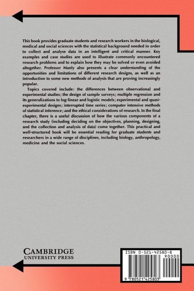 This book provides students and research workers in the biological, medical and social sciences with the statistical background needed to collect and analyse data in an intelligent and critical manner. Key examples and case studies are used to illustrate commonly encountered research problems and to explain how they may be solved or even avoided altogether. Professor Manly also presents a clear understanding of the opportunities and limitations of different research designs, as well as an introduction to some new methods of analysis that are proving increasingly popular. Topics covered include the differences between observational and experimental studies; the design of sample surveys; multiple regression and its generalizations to log-linear and logistic models; experimental and quasi-experimental designs; interrupted time series; computer intensive methods of statistical inference; and the ethical considerations of research. In the final chapter, there is a useful discussion of how the various components of a research study (including deciding on the objectives, planning, designing, and the collection and analysis of data) come together. This practical and well-structured book will be essential reading for graduate students and researchers in a wide range of disciplines, including biology, anthropology, medicine and the social sciences.