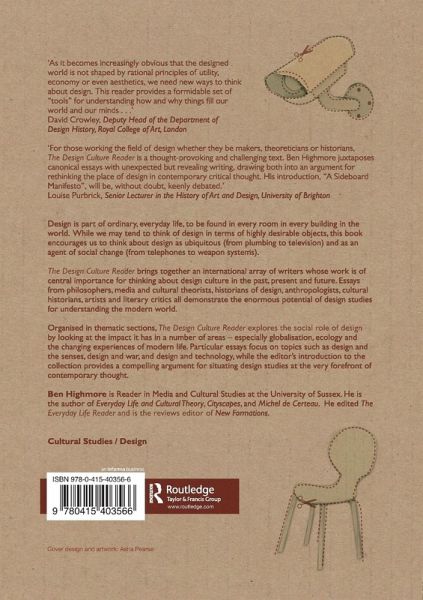 '[An] attempt to push the concept of design into new territories... It will certainly challenge its readers to question any assumptions they may have about design culture and to reconstitute their understanding with a broader, richer frame of reference. If that is the purpose of a reader, then Highmore's will certainly be a resounding success.' - Journal of Design History