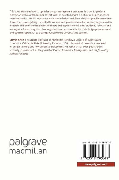 This book examines how to optimize design management processes in order to produce innovation within organizations. It first looks at how to harvest a culture of design and then examines topics specific to product and service design. Individual chapters provide anecdotes drawn from leading design-oriented firms, and best practices based on cutting-edge, scientific research. This book's unique blend of theory and application will offer students, scholars, and managers valuable insight on how organizations can revolutionize their design processes and leverage their approach to create groundbreaking products and services.