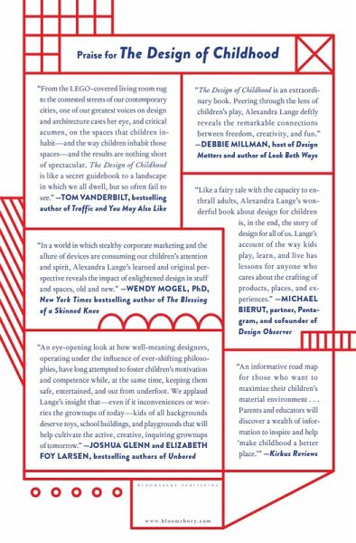 Pulitzer Prize-winning design critic Alexandra Lange's eye-opening exploration of how children's playthings and physical surroundings affect their development, from building blocks to city blocks. Parents obsess over their children's playdates, kindergarten curriculum, and every bump and bruise, but the toys, classrooms, playgrounds, and neighborhoods little ones engage with are just as important. These objects and spaces encode decades, even centuries of changing ideas about what makes for good child-rearing--and what does not. Do you choose wooden toys, or plastic, or, increasingly, digital? What do youngsters lose when seesaws are deemed too dangerous and slides are designed primarily for safety? How can the built environment help children cultivate self-reliance? In these debates, parents, educators, and kids themselves are often caught in the middle. Now, prominent design critic Alexandra Lange reveals the surprising histories behind the human-made elements of our children's pint-size landscape. Her fascinating investigation shows how the seemingly innocuous universe of stuff affects kids' behavior, values, and health, often in subtle ways. And she reveals how years of decisions by toymakers, architects, and urban planners have helped--and hindered--American youngsters' journeys toward independence. Seen through Lange's eyes, everything from the sandbox to the street becomes vibrant with buried meaning. The Design of Childhood will change the way you view your children's world--and your own.