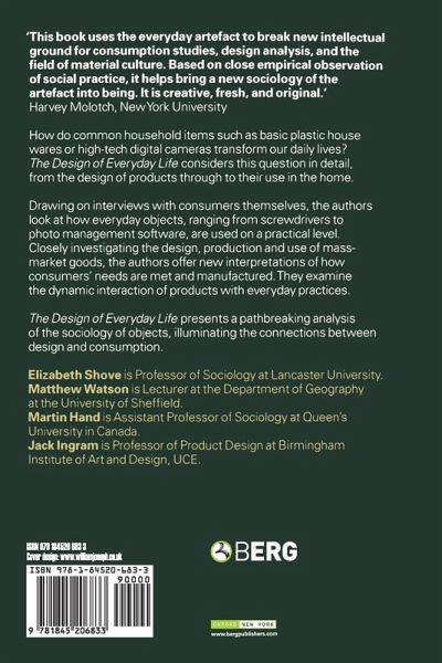 How do common household items such as basic plastic house wares or high-tech digital cameras transform our daily lives? The Design of Everyday Life considers this question in detail, from the design of products through to their use in the home. Drawing on interviews with consumers themselves, the authors look at how everyday objects, ranging from screwdrivers to photo management software, are used on a practical level. Closely investigating the design, production and use of mass-market goods, the authors offer new interpretations of how consumers' needs are met and manufactured. They examine the dynamic interaction of products with everyday practices. The Design of Everyday Life presents a pathbreaking analysis of the sociology of objects, illuminating the connections between design and consumption.