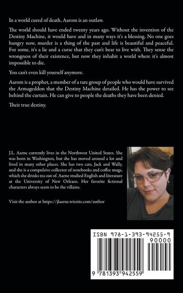 In a world cured of death, Aarom is an outlaw. The world should have ended twenty years ago. Without the invention of the Destiny Machine, it would have and in many ways it's a blessing. No one goes hungry now, murder is a thing of the past and life is beautiful and peaceful. For some, it's a lie and a curse that they can't bear to live with. They sense the wrongness of their existence, but now they inhabit a world where it's almost impossible to die. You can't even kill yourself anymore. Aarom is a prophet, a member of a rare group of people who would have survived the Armageddon that the Destiny Machine derailed. He has the power to see behind the curtain. He can give to people the deaths they have been denied. Their true destiny.