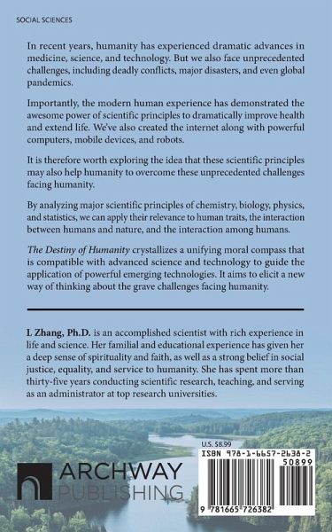 In recent years, humanity has experienced dramatic advances in medicine, science, and technology. But we also face unprecedented challenges, including deadly conflicts, major disasters, and even global pandemics. Importantly, the modern human experience has demonstrated the awesome power of scientific principles to dramatically improve health and extend life. We've also created the internet along with powerful computers, mobile devices, and robots. It is therefore worth exploring the idea that these scientific principles may also help humanity to overcome these unprecedented challenges facing humanity. By analyzing major scientific principles of chemistry, biology, physics, and statistics, we can apply their relevance to human traits, the interaction between humans and nature, and the interaction among humans. The Destiny of Humanity crystallizes a unifying moral compass that is compatible with advanced science and technology to guide the application of powerful emerging technologies. It aims to elicit a new way of thinking about the grave challenges facing humanity.